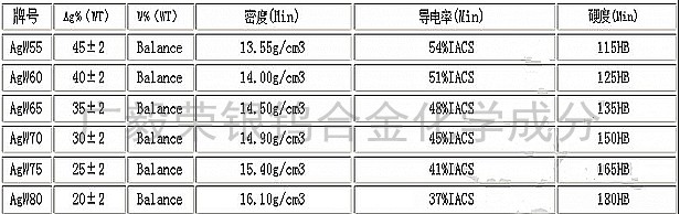 廣毅榮銀鎢牌號及化學(xué)成分:
