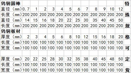 廣毅榮鎢銅合金現(xiàn)貨規(guī)格: